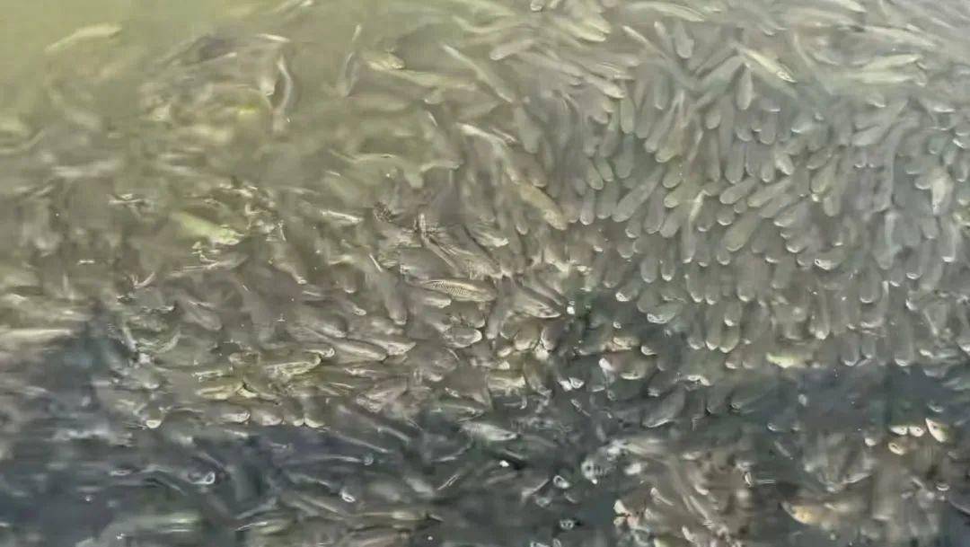 近日配多多,有用户发视频,在河北省沧州园博园一码头附近,聚集有大量鱼类,该用户向水中投喂食物后引发鱼群争抢。视频显示,这些鱼的数量较多,个头也不小,粗略估计至少有上百条。